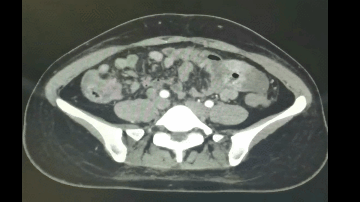 ◈ 检查诊断:1、符合部分小肠术后,吻合口未见异常强化影。2、盆腔积液,对比前片积液量减少。3、腹腔脂肪间隙稍浑浊,网膜稍增厚,较前片减轻。4、左下腹前腹膜区小结节。