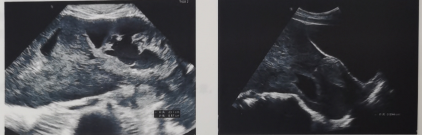◈ 门诊行腹部超声检查提示腹盆腔巨大囊实性肿物,实性为主,范围约23.1cm×8.6cm,不规则,边界尚清,内见条形血流信号。检查提示“腹盆腔囊实性肿物,考虑间叶组织来源”。