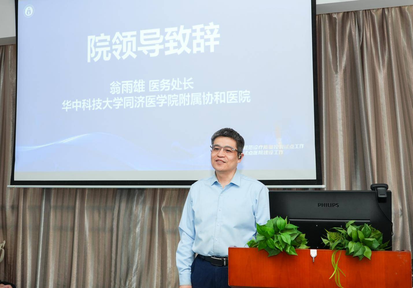 随后,武汉协和医院医务处处长翁雨雄代表医院致辞。翁处长向专家组介绍了武汉协和医院的发展概况。始建于1866年的武汉协和医院,明年将迎来建院160周年华诞。作为国家卫健委直属的综合性公立医院,医院综合实力稳居全国前列,目前拥有主院区、肿瘤中心、西院区及金银湖院区四个院区,实际开放床位近6900张,年手术量接近20万台。他特别提到,在国家专科能力建设的新要求中,胸外科与食管癌诊疗是重点评估领域之一。医院将全力支持胸外科及相关学科以此次评审为契机,全面梳理诊疗流程,完善质控体系,力争将武汉协和医院打造成为华中地区乃至全国食管癌规范诊疗的标杆。