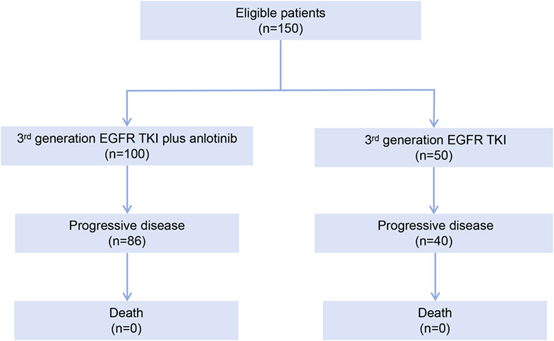 为补充ALTER-L001试验的研究结果,并为安罗替尼在初始治疗背景下作为持续全身治疗的附加治疗方案提供更多证据,本文开展了一项真实世界研究,旨在探讨安罗替尼用于一线第三代EGFR-TKIs治疗期间出现缓慢/局部/寡进展的EGFR突变型NSCLC患者的疗效与安全性。本研究是首个针对缓慢/局部/寡进展NSCLC患者,评估安罗替尼联合第三代EGFR-TKIs疗效的中国真实世界多中心队列研究。
