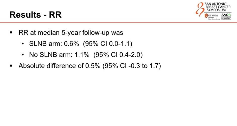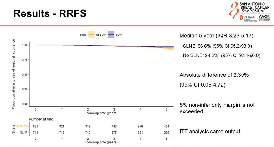 本次研究的核心在于“少做手术”。基于5年的随访结果,对于这部分患者不再进行前哨淋巴结活检(SLNB)真的是安全的吗?复发率是否足够低?