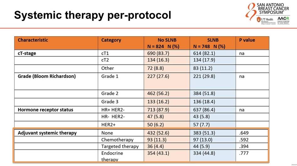 Prof. Dr. M.L. Smidt:确实如此。我们已经发表了关于生活质量的数据,结果显示SLNB对健康相关的生活质量存在显著的负面影响,同时也增加了手臂相关的症状(如水肿、疼痛等)。 在我们的研究中,豁免SLNB组避免了这些手术相关的并发症。我们预计明年将公布5年的长期生活质量随访数据,届时将进一步证实“少做手术”给患者带来的长期生活质量获益。