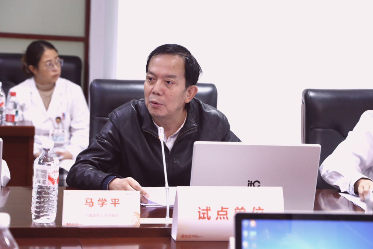 本次会议由宁夏医科大学总医院周忠伟处长主持。评估专家组以空军军医大学第二附属医院姜涛教授为组长,成员包括中国医学科学院肿瘤医院张瑞祥教授、空军军医大学唐都医院田丰教授,西安交通大学第二附属医院马红兵教授、空军军医大学第二附属医院尤向辉教授、空军第九八六医院王常利教授。试点单位专家组包括宁夏医科大学总医院何进喜教授、乔志雄教授、韩育宁教授、何伟教授、李靖教授、宋绪洋教授、柳全霞教授、海平教授、刘晓莉教授、张正平教授等。
