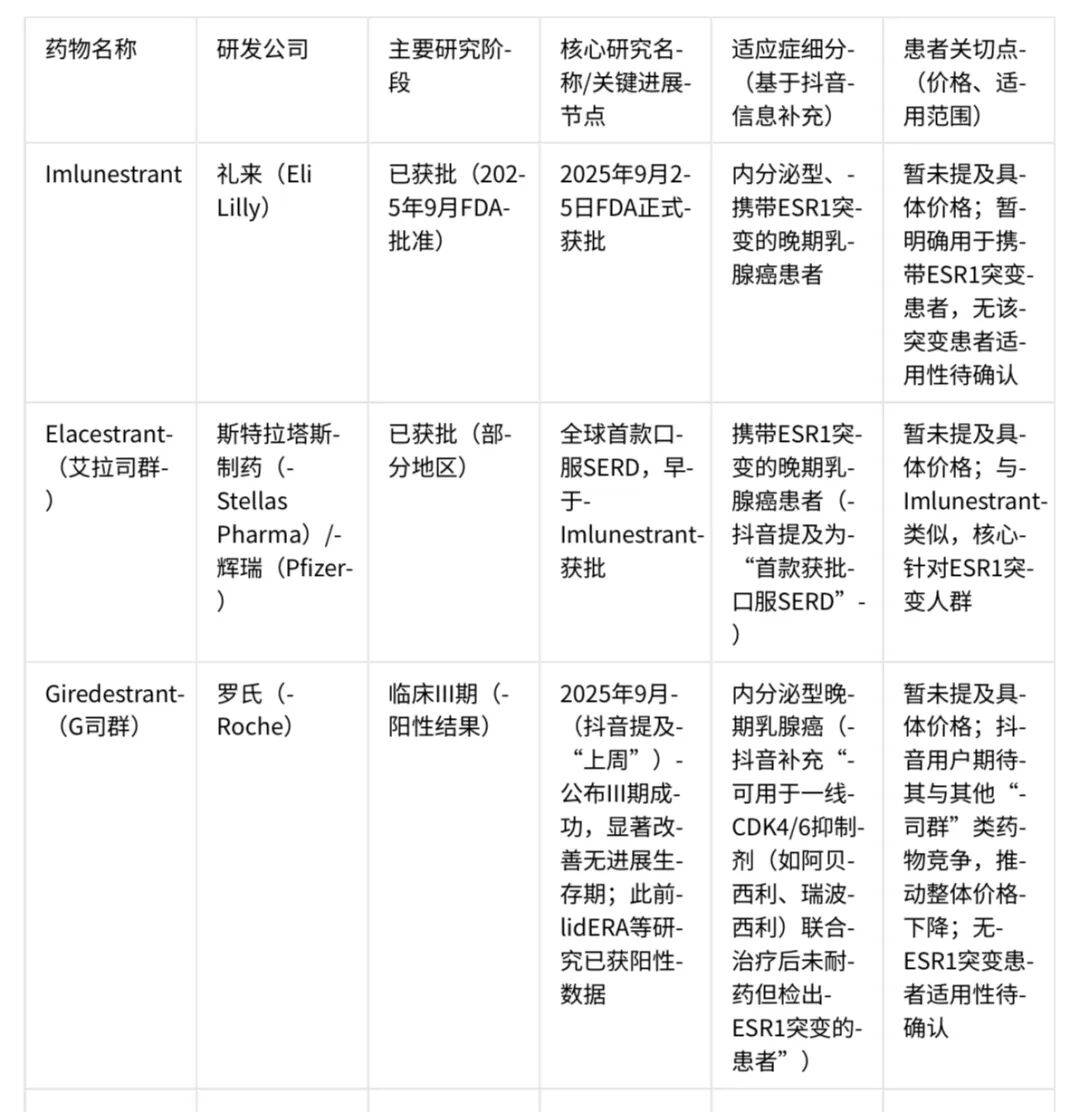 二是国产药企加速布局,如恒瑞医药、百济神州的口服SERD进入II期临床,推动“进口替代”与价格亲民化;