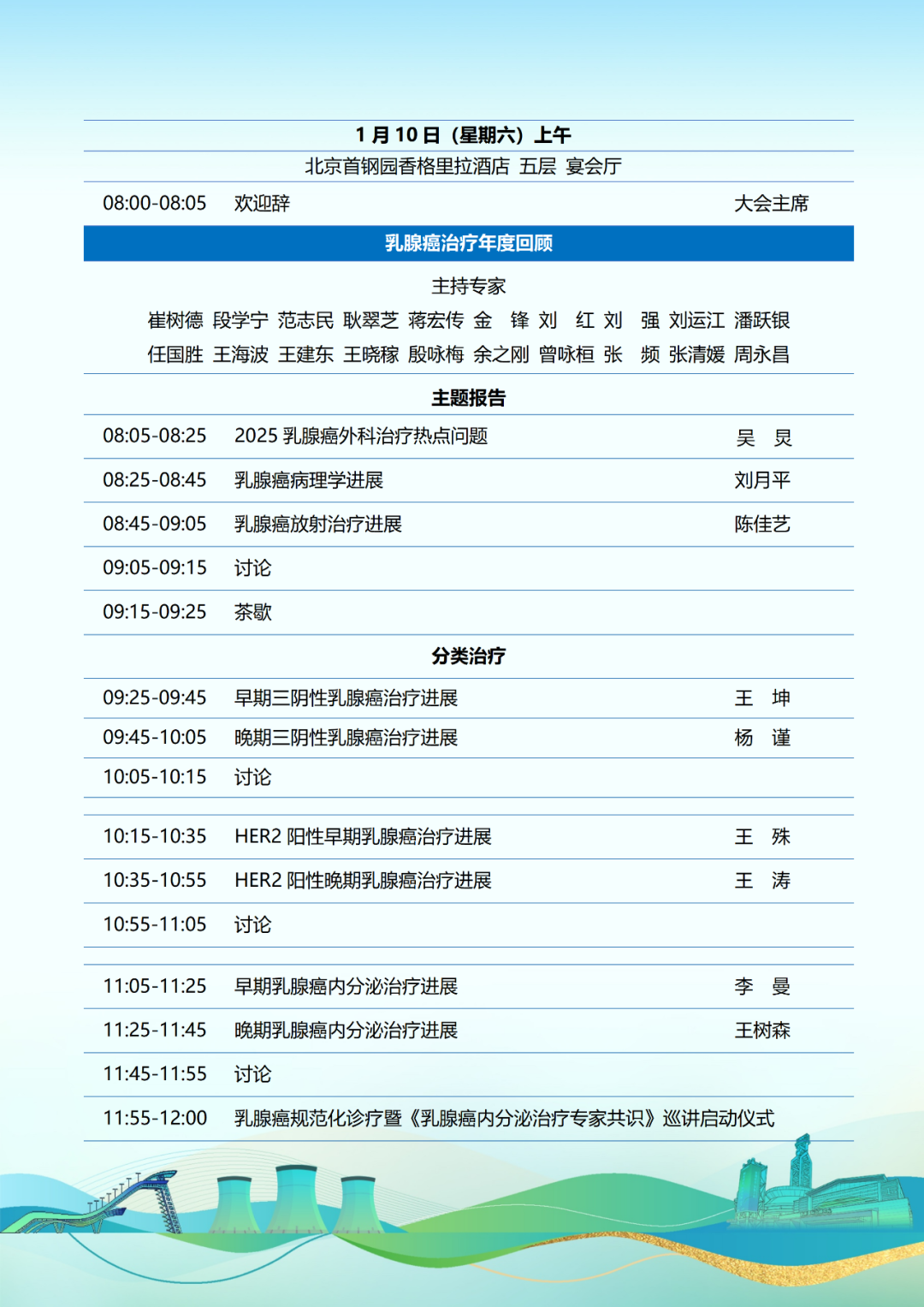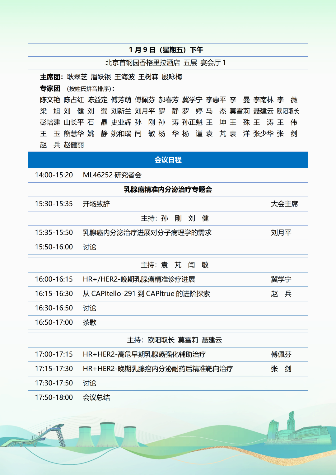 “乳腺癌北方沙龙·年度进展回顾”将于2026年1月9-11日在北京召开,请查阅会议日程,谢谢!