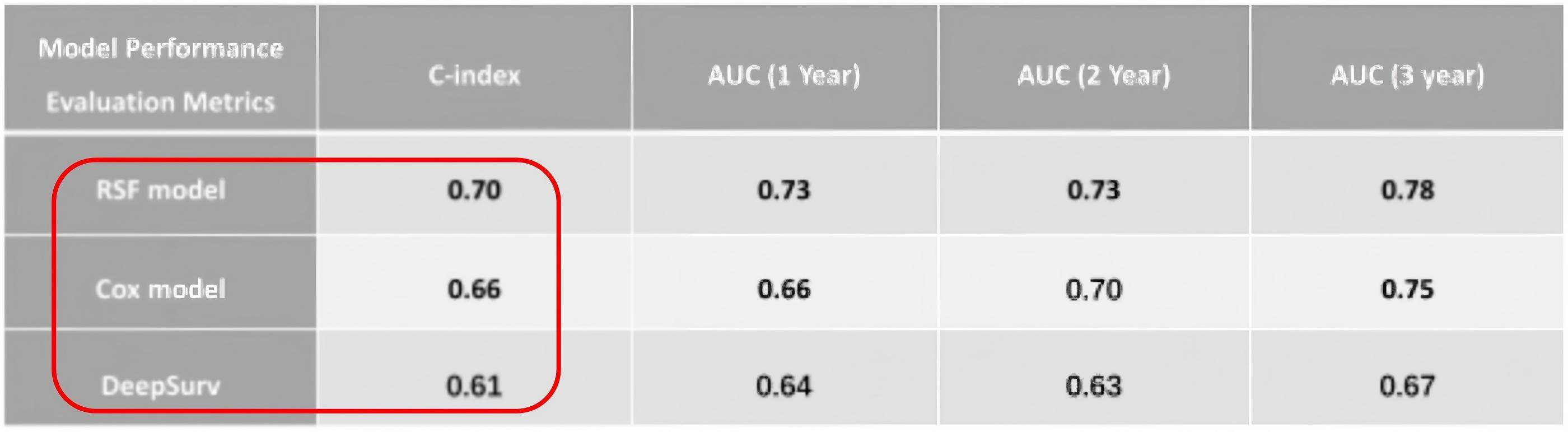 表1. RSF模型性能评估
