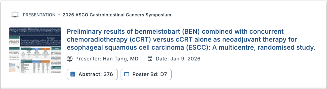研究提示,贝莫苏拜单抗联合同步放化疗新辅助治疗在食管鳞癌中显示出鼓舞人心的初步疗效,展现出优于传统同步放化疗的病理缓解率与可控的安全性。本研究将继续入组和随访,进一步阐明该方案对长期生存结局的影响。