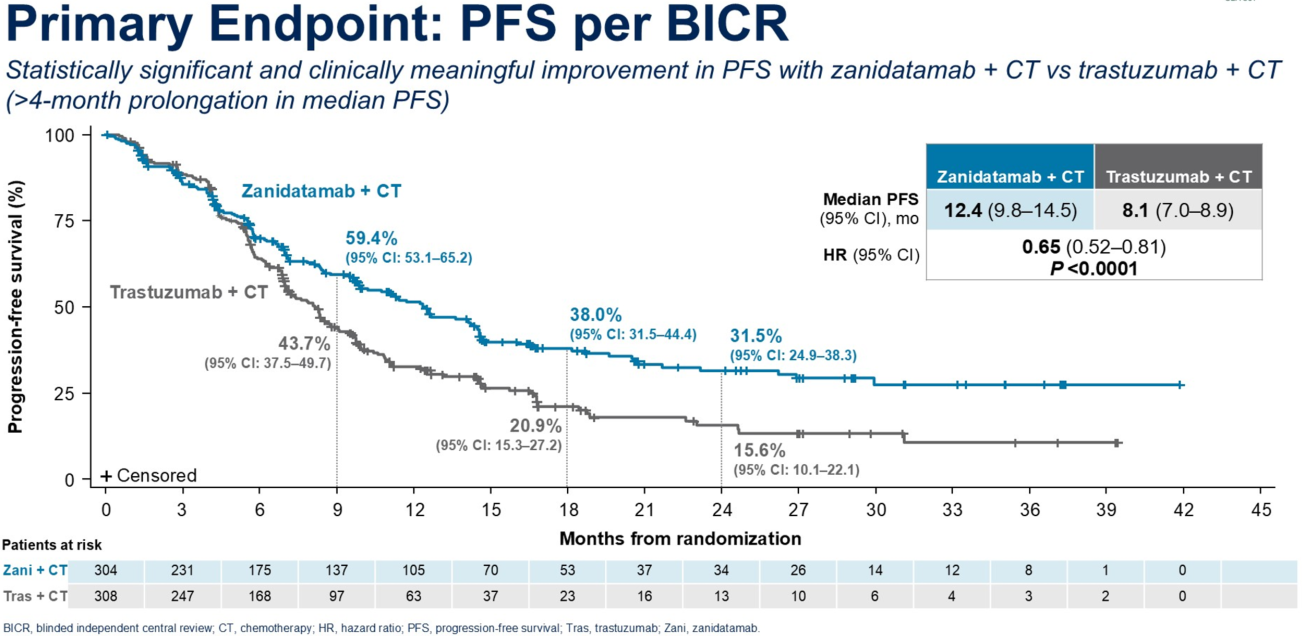 • 泽尼达妥单抗+化疗组:中位PFS同样达到12.4个月HR=0.65, P<0.0001)。