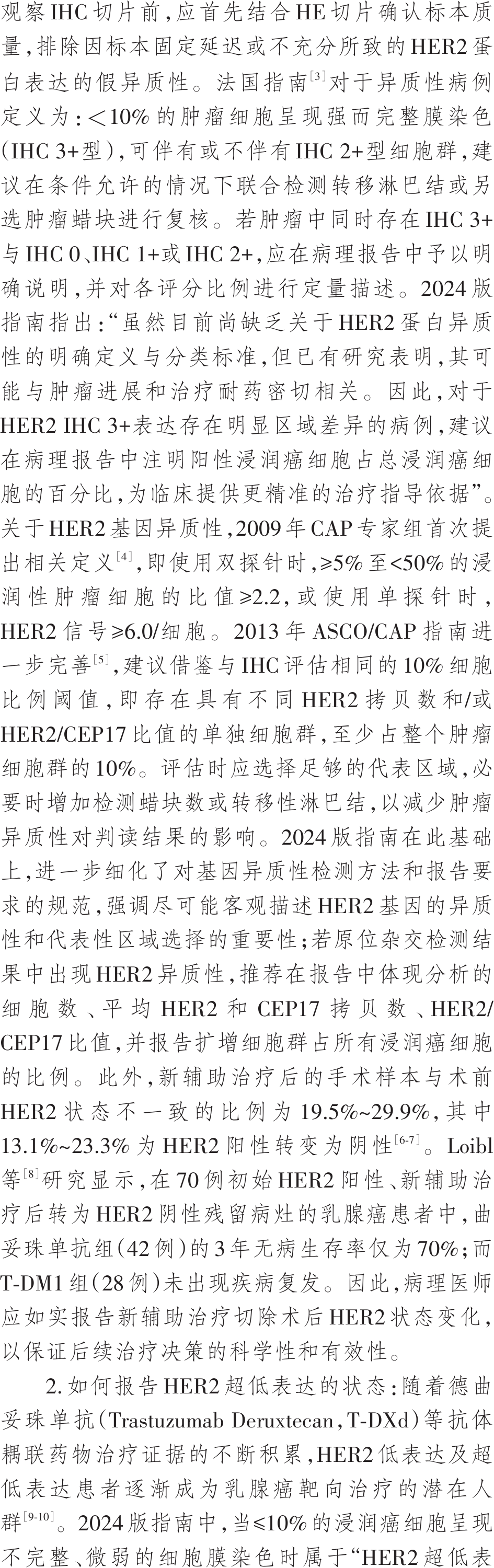 刘月平,杨文涛. 《乳腺癌HER2检测指南(2024版)》发布后的热点问题[J]. 中华病理学杂志,2025,54(12):1256-1261.DOI:10.3760/cma.j.cn112151-20251009-00666