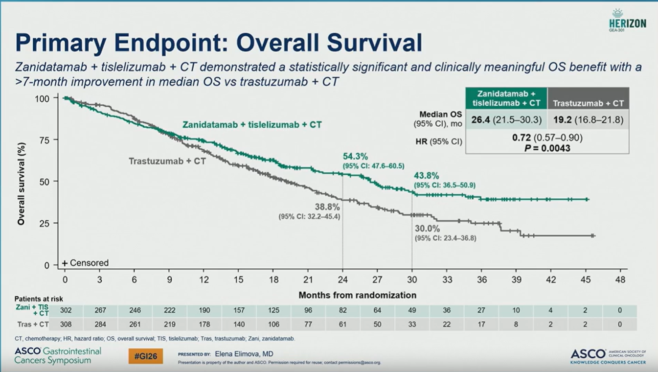 Q1. 邓教授您好,在刚刚结束的ASCO GI会议上,HERIZON-GEA-01 III期研究的数据备受瞩目。请您为我们解读一下这项研究的核心数据。您认为这一结果将如何挑战并可能重塑已沿用十余年的曲妥珠单抗联合化疗标准?