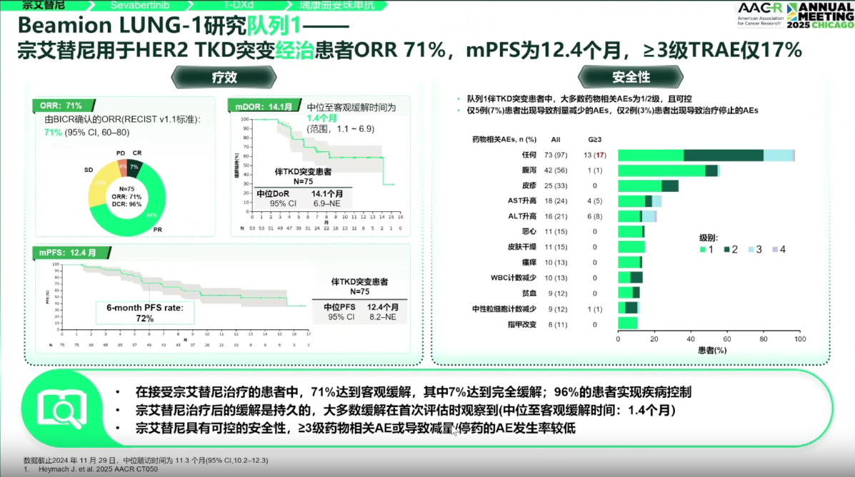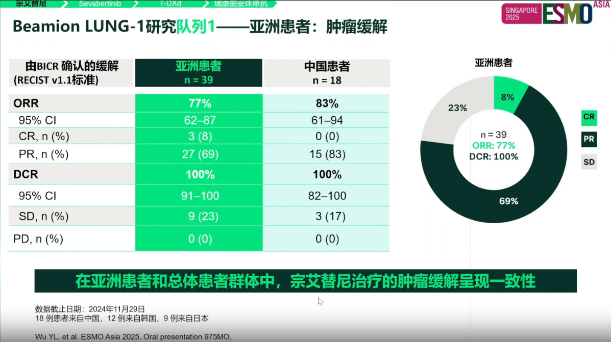 在2025年ESMO Asia大会上,Beamion LUNG-1研究首次披露队列1中来自东亚地区的既往经治HER2酪氨酸激酶结构域(TKD)突变晚期NSCLC患者的疗效与安全性数据,旨在为亚洲地区的临床实践提供证据。
