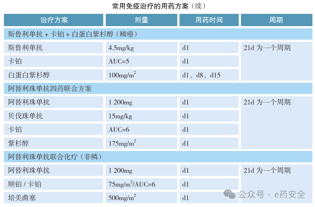 纳武单抗+伊匹单抗;纳武单抗+伊匹单抗+紫杉醇+卡铂;曲美木单抗+度伐利尤单抗+卡铂+白蛋白紫杉醇;曲美木单抗+度伐利尤单抗+卡铂/顺铂+吉西他滨