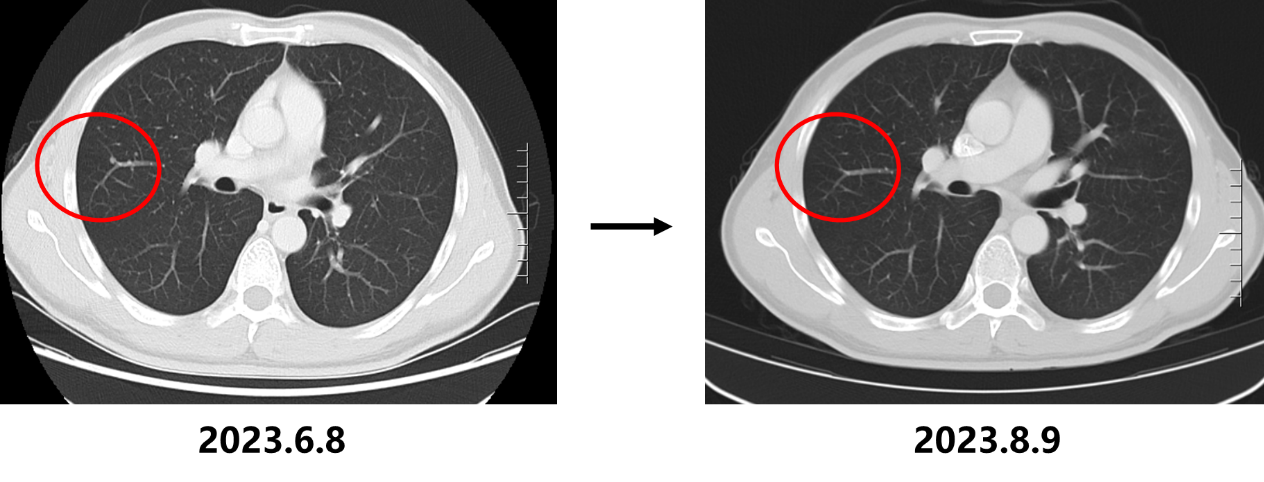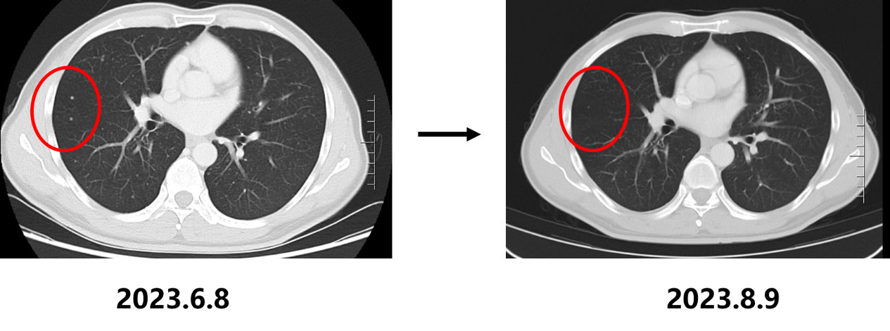 •  期间患者定期复查CT,持续维持深度缓解(PR)。