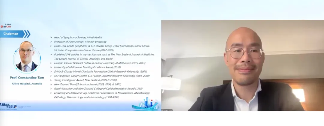 在随后的学术报告环节中,Tam教授指出,随着以靶向治疗为主导的治疗新时代全面来临,CLL的治疗格局已发生深刻变革。基于SEQUOIA研究及BGB-11417-101研究等的最新随访数据,Tam教授表明新一代BTKi泽布替尼作为CLL一线治疗的基石地位愈发稳固。而SEQUOIA研究的长随访结果亦为初治CLL临床实践中的核心问题带来答案。另外,Tam教授还强调,尽管固定疗程治疗可满足部分CLL患者如追求达深度缓解后停药的较年轻且具有低危特征患者的需求,但BTKi如泽布替尼为基础的持续治疗依然是当前大多数初治CLL患者的优选治疗方案。
