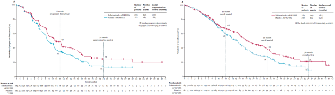 [5] SHITARA K, LORDICK F, BANG YJ, et al. Zolbetuximab plus mFOLFOX6 in patients with CLDN18.2-positive, HER2-negative, untreated, locally advanced unresectable or metastatic gastric or gastro-oesophageal junction adenocarcinoma (SPOTLIGHT): a multicentre, randomised, double-blind, phase 3 trial. Lancet. 2023;401(10389):1655-1668.
