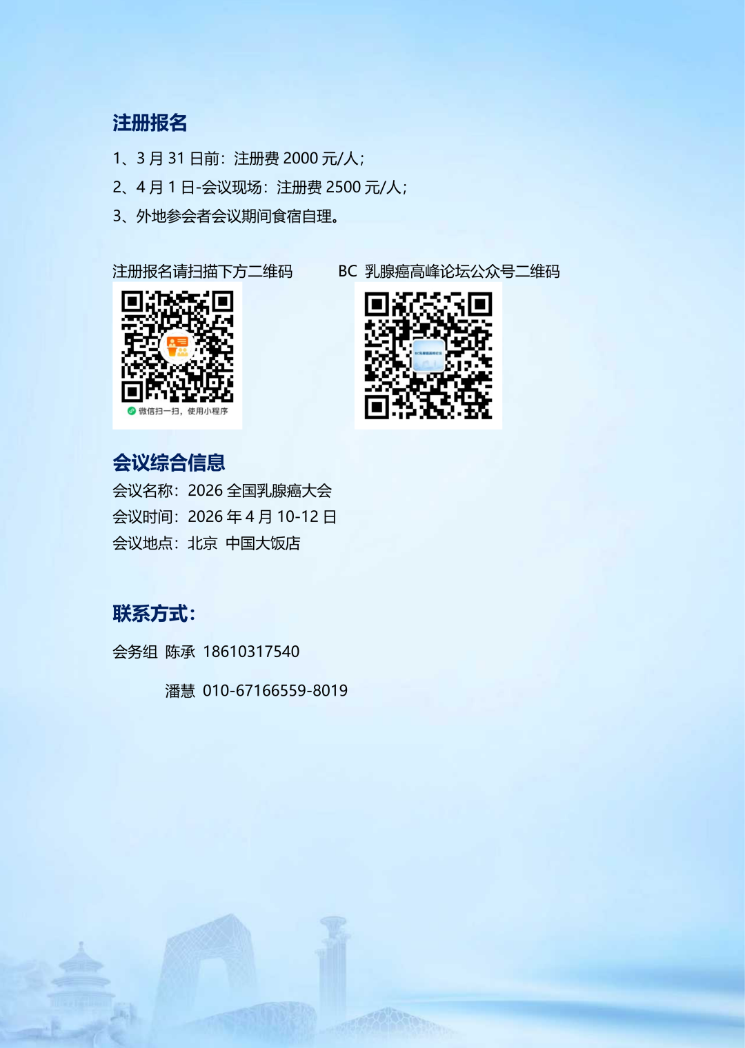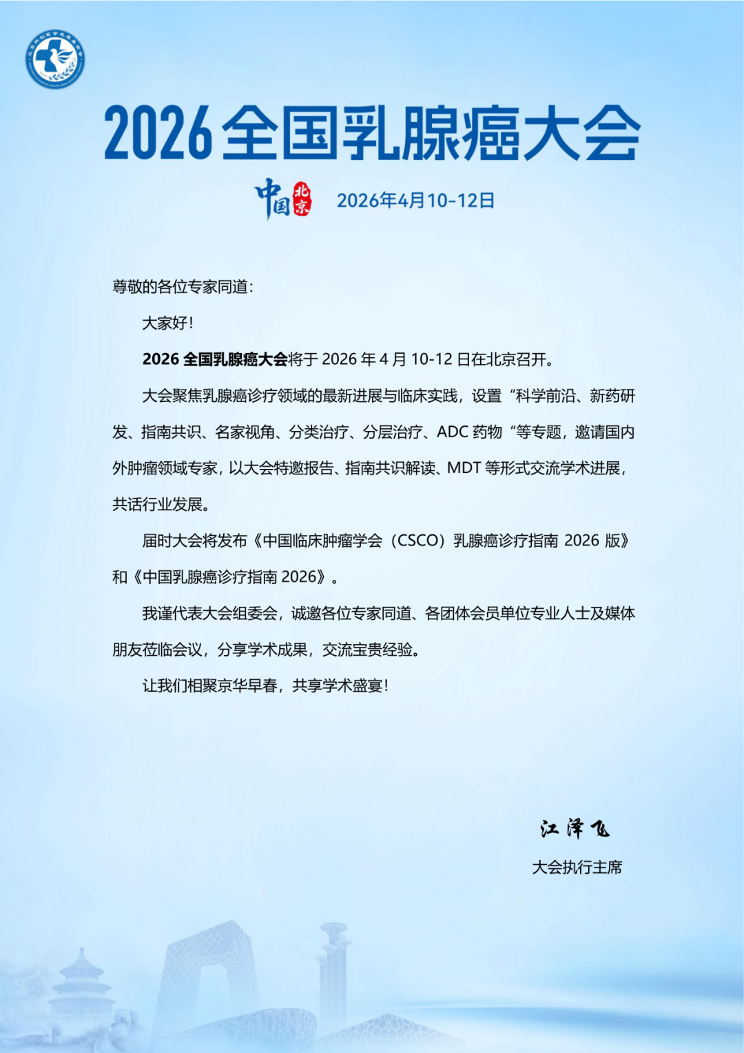 第二轮会议通知 | “2026全国乳腺癌大会”将于4月10-12日在北京召开