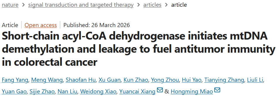 STTT | 陆军军医大学缪洪明等团队:发现结直肠癌中ACADS通过调控线粒体DNA甲基化激活抗肿瘤免疫