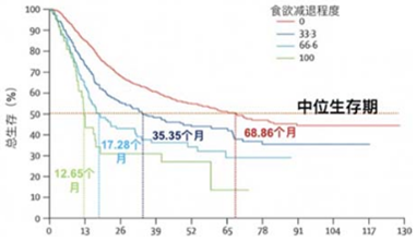 这也说明,食欲不振所带来的体重减轻会导致身体机能下降,进而难以耐受积极的抗肿瘤治疗,并最终导致远期治疗效果不佳。