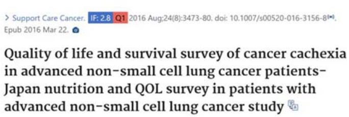 2016 年,在 Support Care Cancer 期刊上探讨了肺癌患者的基础生活质量对远期疗效的具体影响。