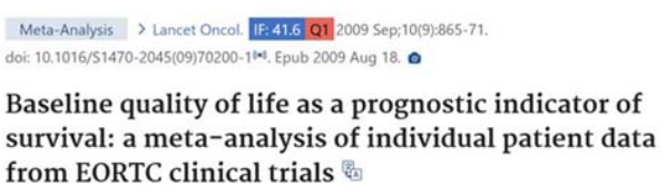 2009 年, Lancet Oncology 《柳叶刀肿瘤学》上发表了一项 Meta 分析,由官方治疗组织欧洲肿瘤研究和治疗组织 EORTC 在 1986—2004 年期间开展了 30 项随机对照临床研究。