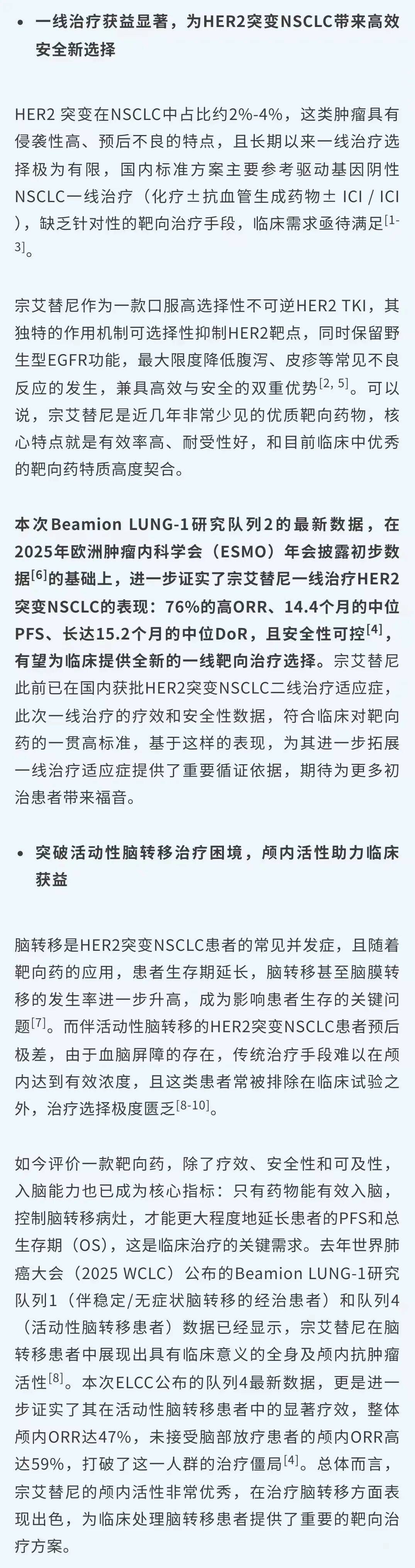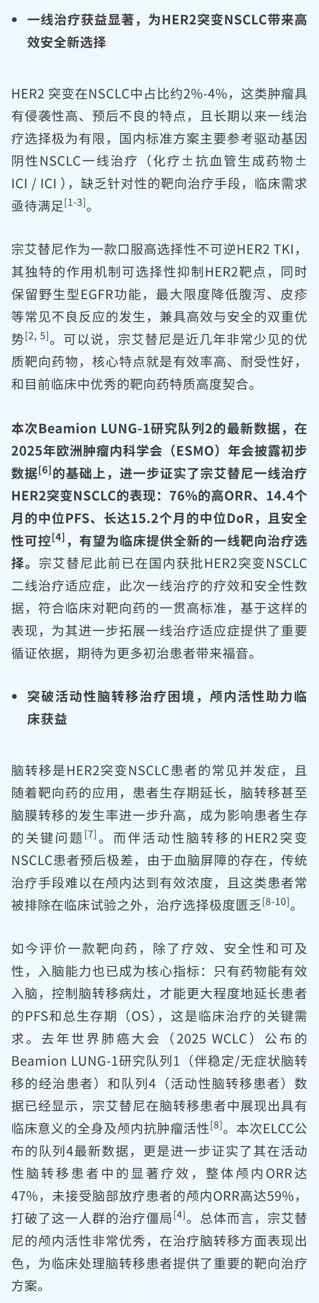 [6]Sanjay Popat, Noboru Yamamoto, Nicolas Girard, et al. Zongertinib as First-Line Treatment in Patients with Advanced HER2-Mutant NSCLC: Beamion LUNG-1. 2025 ESMO. LBA74 .