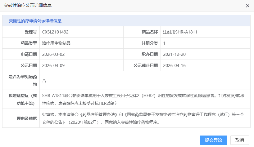 第 11 次!恒瑞 ADC 新药新适应症拟纳入突破性治疗