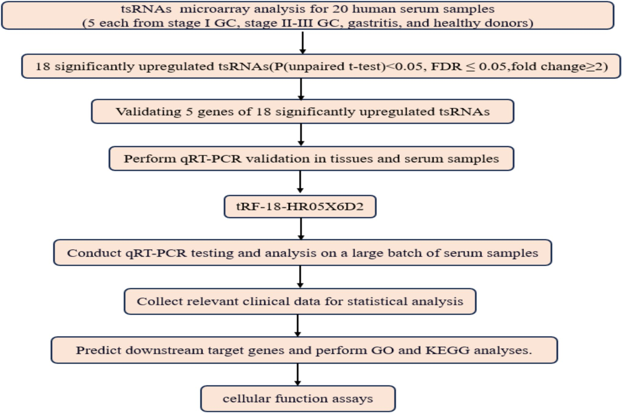 本研究正是在传统标志物效能受限和新型生物标志物探索成为趋势的背景下进行的。研究旨在系统性地识别和验证在胃癌患者血清中具有诊断和预后价值的tsRNAs分子,并重点探讨其中差异显著的tRF-18-HR05X6D2的临床应用价值、与临床病理参数的相关性以及促癌机制,以期为提高胃癌的早期诊断精度和精准治疗提供坚实的科学依据。