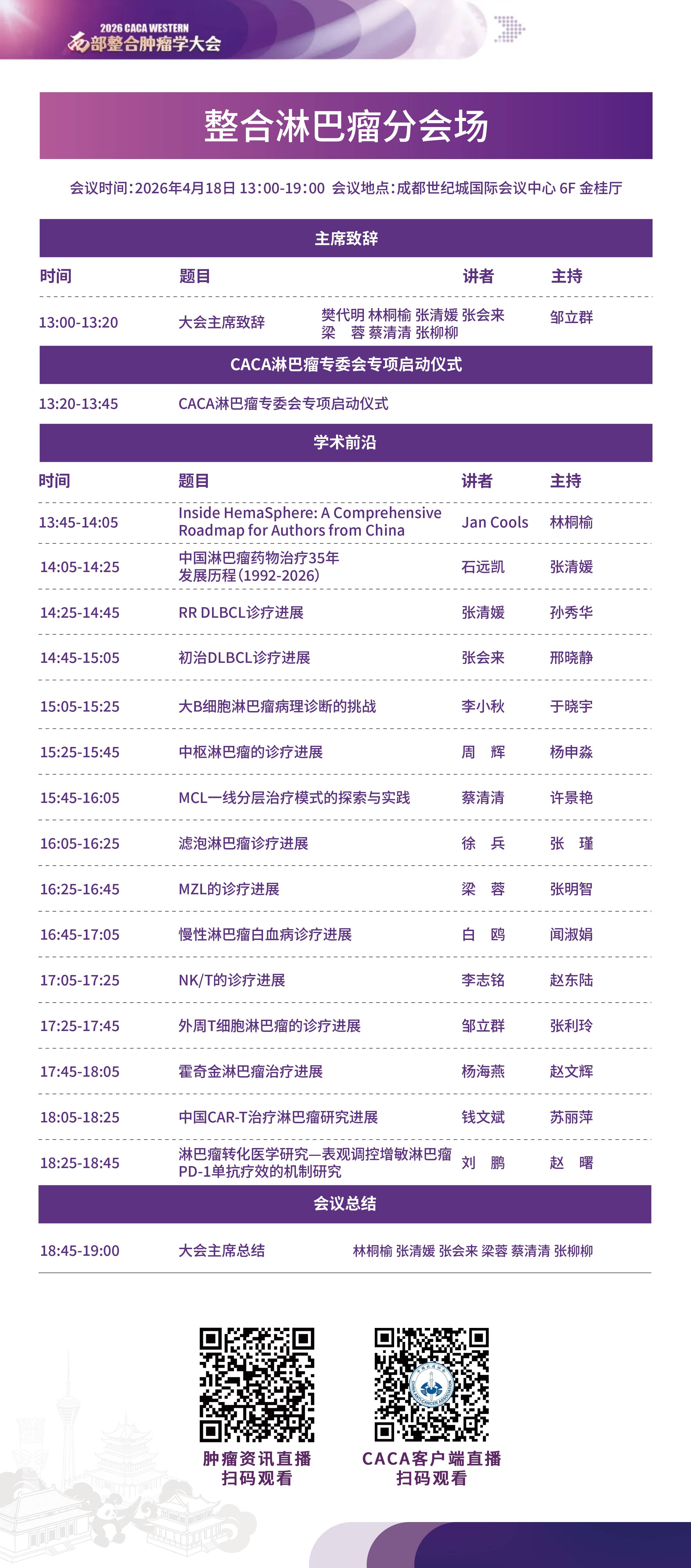 成都四月,春意正浓。诚邀全国淋巴瘤领域的专家学者、临床医生及科研人员拨冗参会,共同见证CACA淋巴瘤专委会新起点,携手探索淋巴瘤规范化诊疗与精准未来!