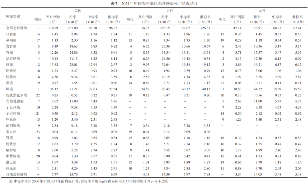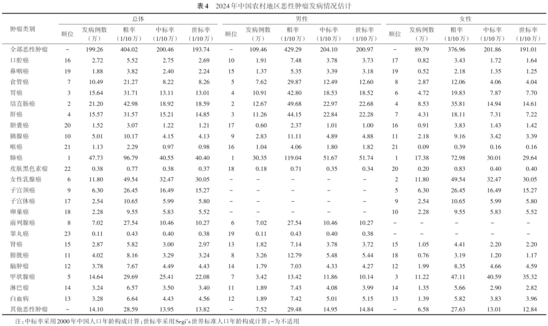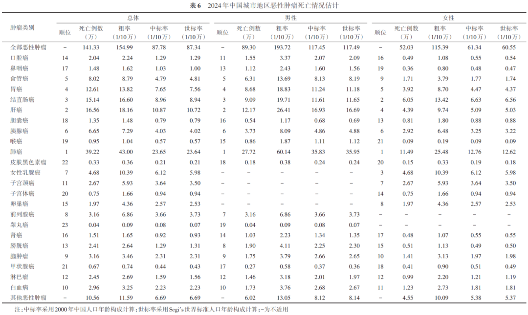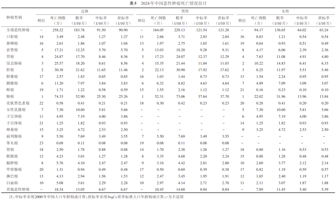 2024年中国恶性肿瘤发病和死亡情况估计