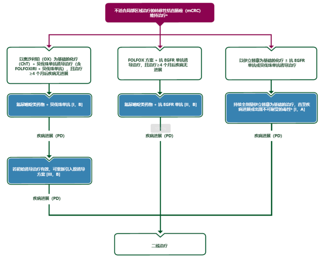 图2 不适合局部区域治疗的转移性结直肠癌(mCRC)的维持治疗