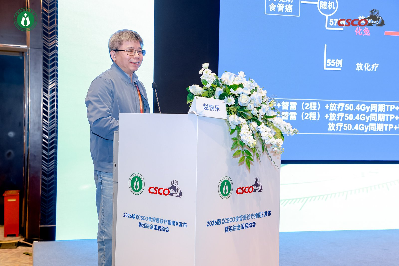 会议尾声,刘波教授进行了总结致辞。本次大会圆满完成了2026版《CSCO食管癌诊疗指南》发布及全国巡讲会议的启动,全国食管癌领域大咖围绕围手术期治疗、药物进展、放疗策略更新及临床研究方法学等核心议题展开了深入交流。新版指南立足中国食管癌以鳞癌为主的本土国情,以高级别循证医学证据为基石,在围手术期治疗、风险分层及药物推荐等关键环节实现了重要突破,为临床实践指明了方向。刘波教授强调,指南的生命力在于落地推广,后续将依托全国系列巡讲活动,将新版指南的核心理念下沉至各级医疗机构,让更多患者从规范化、同质化的诊疗服务中切实获益,携手推动我国食管癌诊疗水平再上新台阶。