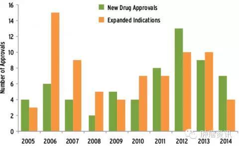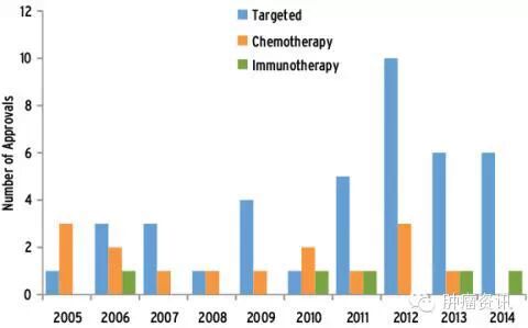 图1 这十年FDA批准的抗癌药物汇总(2014年截止至十月份)