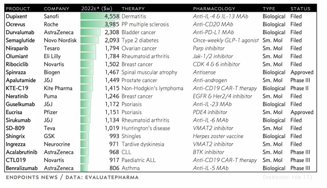 1. Dupilumab,赛诺菲(Sanofi)与再生元(Regeneron)