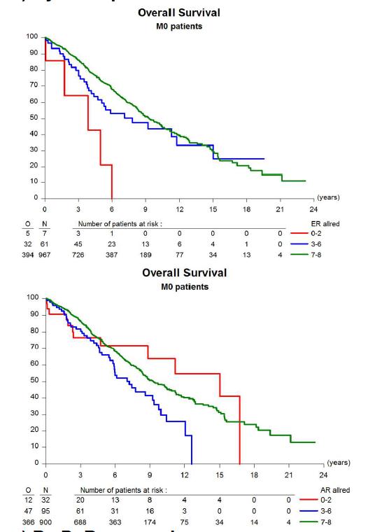 根据患者ER表达的强度来分析:ER低表达(allred评分3-6)的患者,mRFS和mOS分别为6.4年和7.8年;ER高表达(allred评分7-8)的患者,mRFS和mOS分别为7.5年和9.4年,如下图4a。