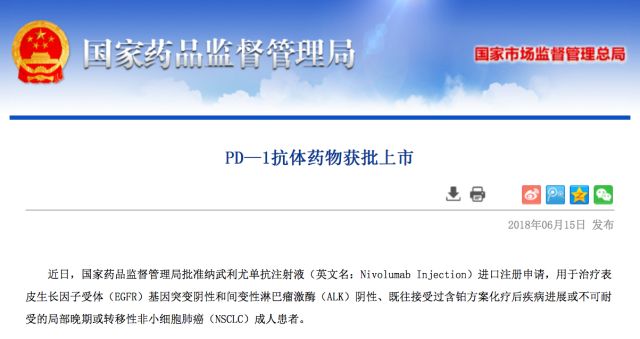 就在上周五(6月15日),中国国家药品监督管理局正式宣布批准欧狄沃(纳武利尤单抗注射液,nivolumab injection)上市!这对于广大肿瘤患者来说,绝对是举足轻重、重大利好的消息了!
