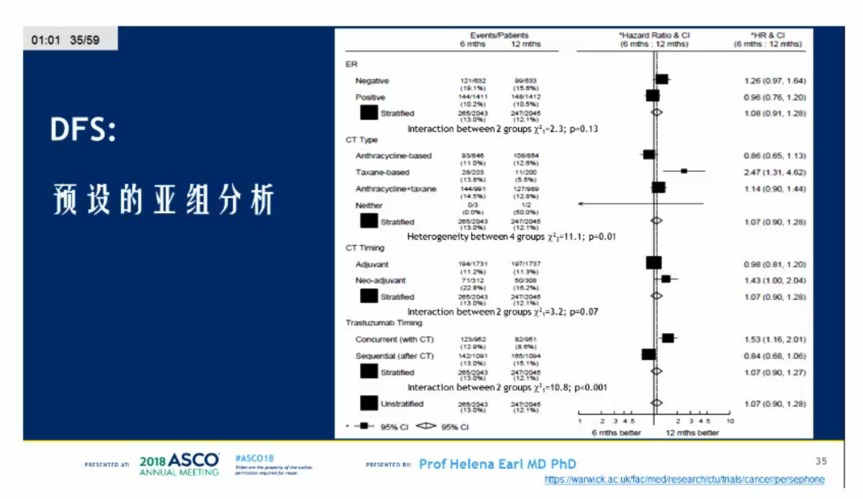 今天来进一步回顾Persephone研究,有一些优势,但也存在不足,总结如下。亚组分析但结果显示这些患者12个月的曲妥珠单抗辅助治疗可能更优:ER-,接受紫衫类+/-蒽环类,接受新辅助化疗,化疗与曲妥珠单抗同步治疗。