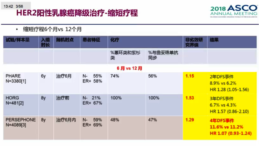 PERSEPHONE:6个月对比12个月曲妥珠单抗辅助治疗HER2阳性早期乳腺癌:随机III期非劣效临床研究及4年DFS结果
