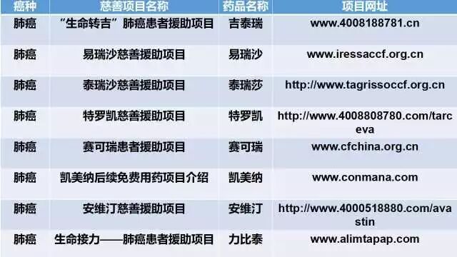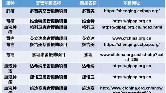 下表整理的是正在进行的慈善赠药项目,希望能将这些信息传递到有需要的人那里,使他们真正获得帮助。赠人玫瑰,手有余香。(左右滑动)