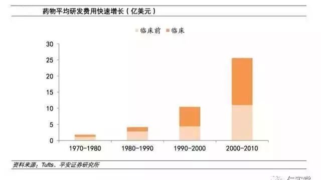 美国塔夫茨大学(Tufts)药物开发研究中心(CSDD)2014年11月18日公布的一份报告。报告称:开发一个新药的平均成本大约为25.6亿美元,其中包括14亿美元的研发开支和11.6亿美元的同期投资损失,这还没算每个药物平均3.12亿美元的售后开支。