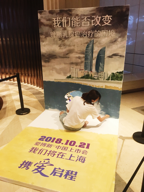 2018年9月19~22日,一年一度的中国临床肿瘤学(CSCO)大会在厦门如期而至。辉瑞携爱博新也隆重出场,邀请美女画家在厦门作画,通过阴霾下的厦门标示性建筑物——双子塔,为前来参会的临床专家展现晚期乳腺癌治疗的困境。浓重的硝烟,让年轻的双子塔不再充满活力,一如晚期乳腺癌治疗。而今爱博新的出现,是晚期乳腺癌治疗的困境期望,其正待一道力量,冲破硝烟,再现活力。