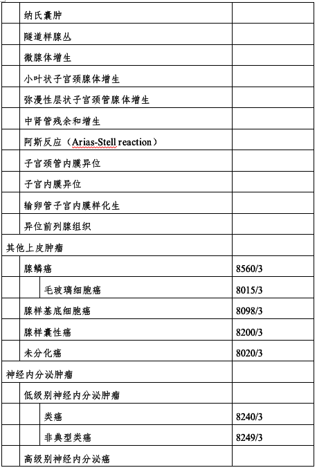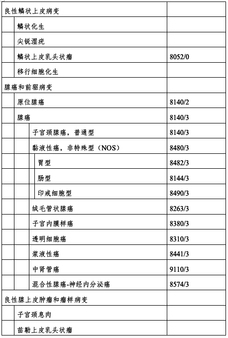 表1 宫颈肿瘤组织学分类及编码(WHO,2014)