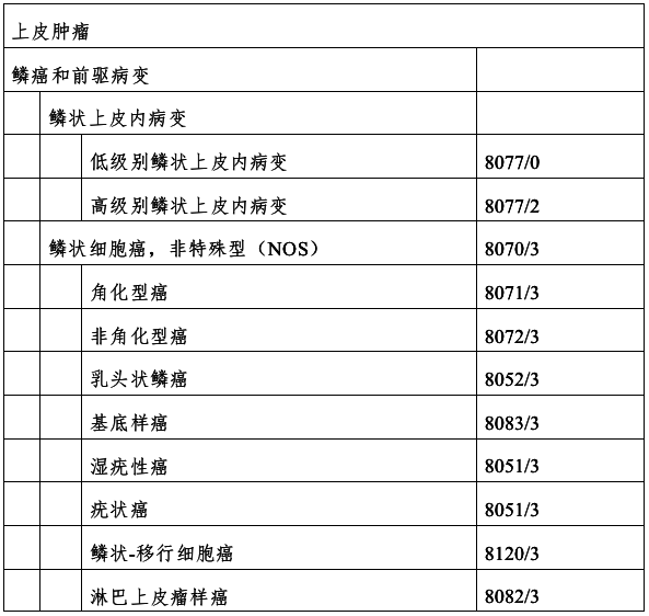 (一)宫颈癌的组织学分类(表1)