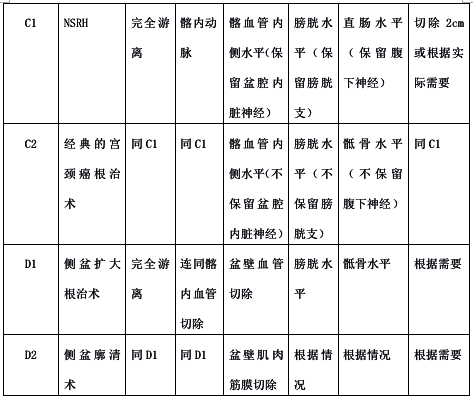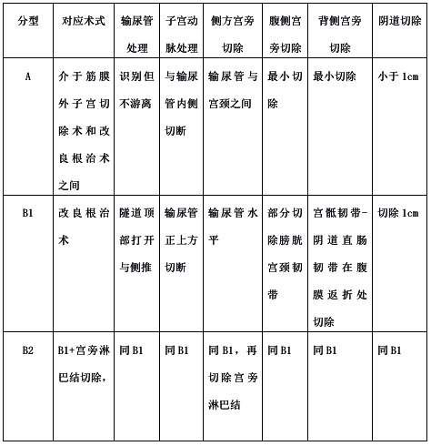 表2 Q-M宫颈癌根治性手术分型如下:
