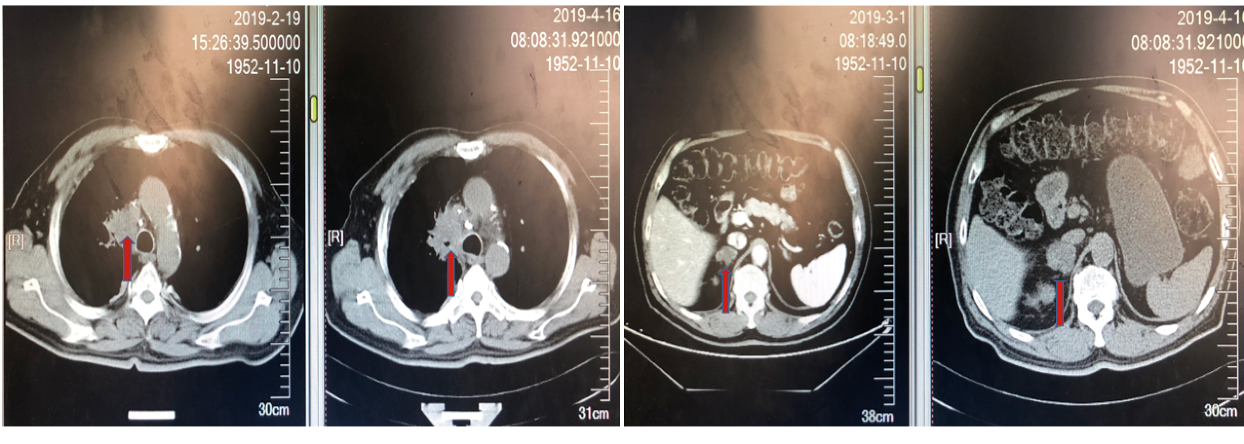 图2. 基线腹部CT发现肾上腺转移