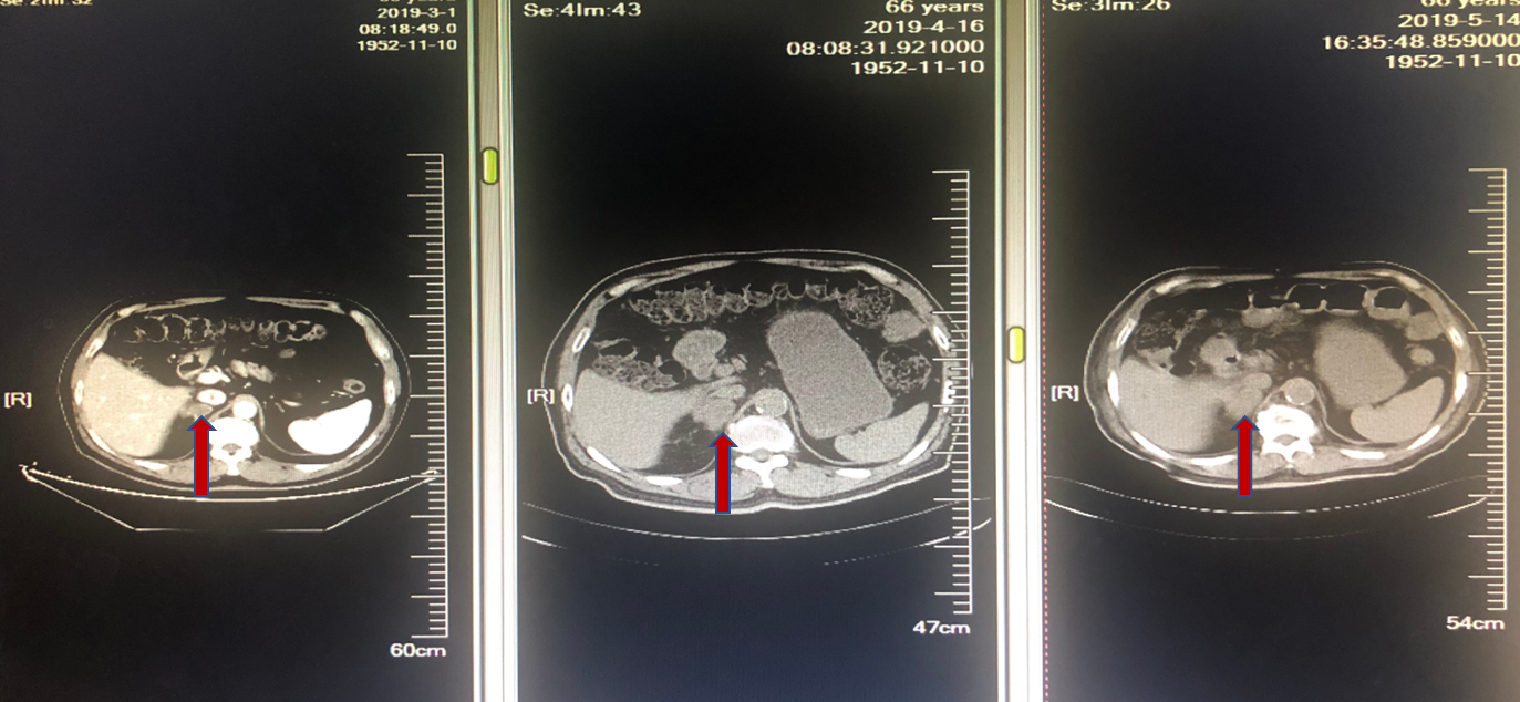 图8. 信迪利单抗治疗3周期后肾上腺肿物缩小