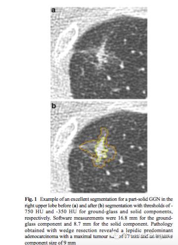 原文题目:Software performance in segmenting ground-glass and solid components of subsolid nodules in pulmonary adenocarcinomas