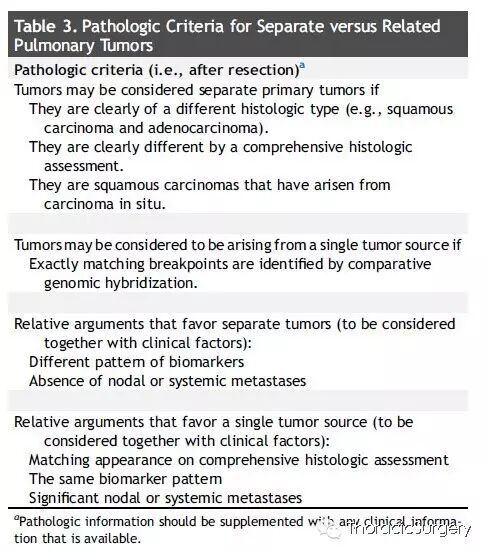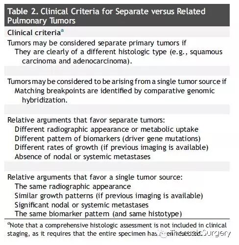 1.     当发现两个或多个肺部肿瘤时,在条件允许的情况下应对肿瘤进行手术完整切除。若无法全部切除,则应该切除体积最大的肿瘤而对其他病灶进行组织学活检,并取得足够量的组织。