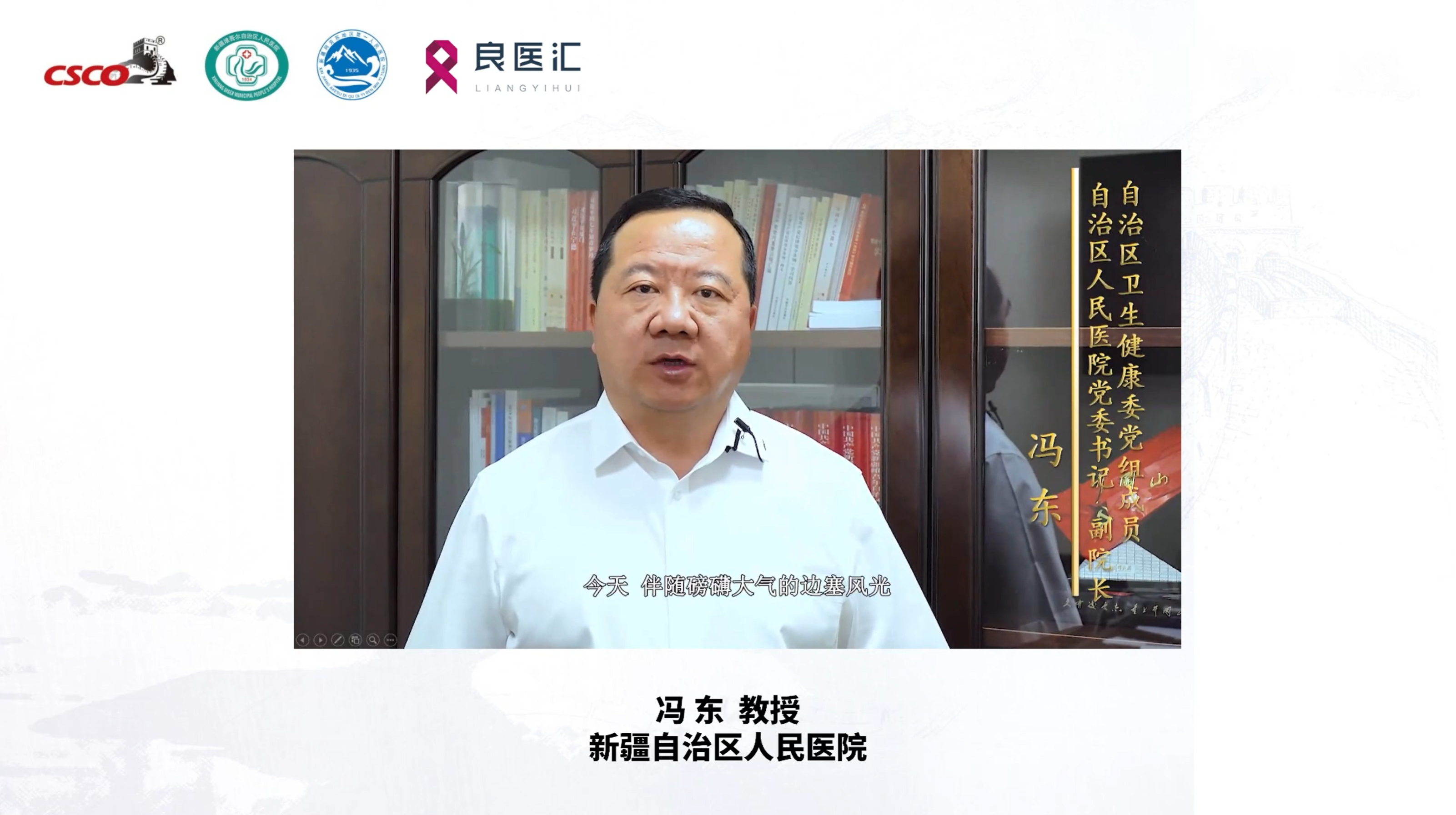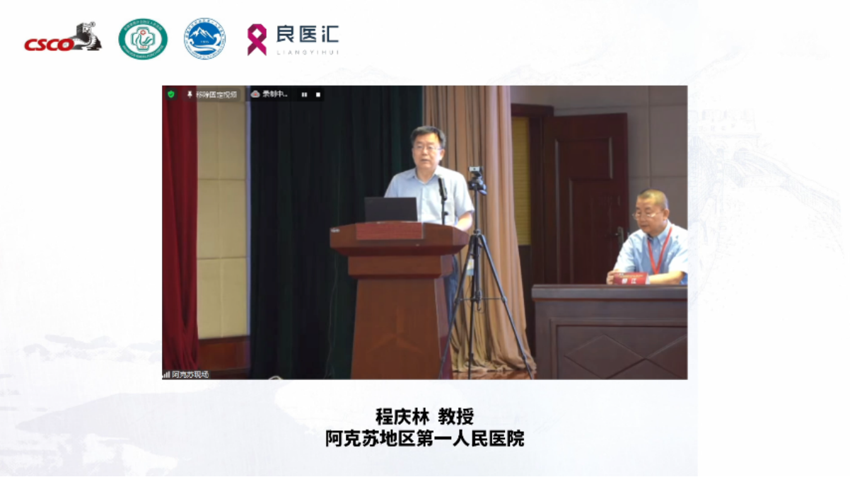 本次大会特邀新疆自治区人民医院柳江教授担任大会主席并主持开幕式。开幕式上,新疆卫健委党组成员、自治区人民医院党委书记冯东书记,阿克苏地区第一人民医院党委书记、副院长程庆林书记,CSCO代表、北京大学国际医院梁军教授发表精彩致辞。下午的开场环节,中山大学附属肿瘤医院张力教授发表精彩致辞。