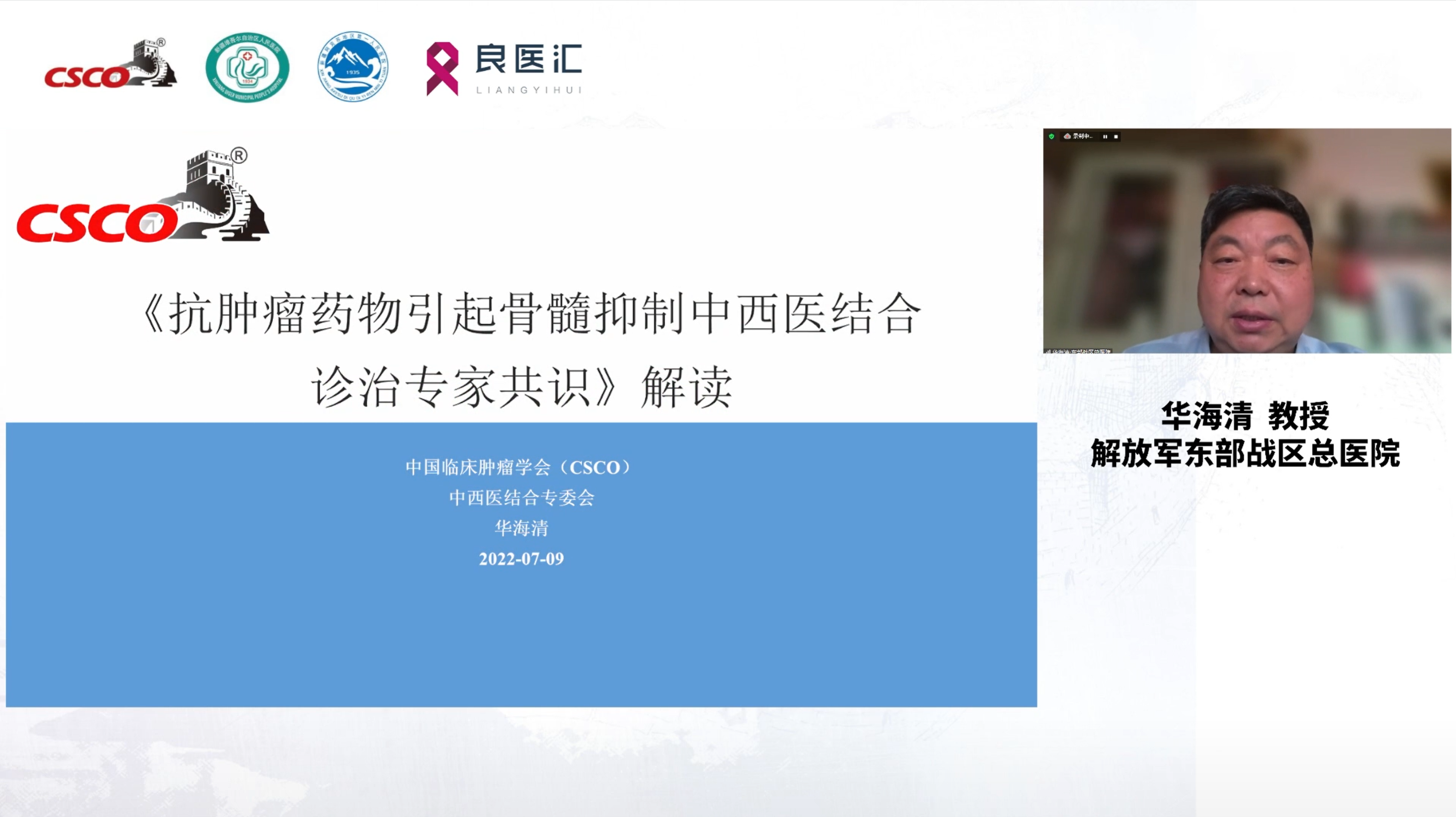 解放军东部战区总医院华海清教授解读了《抗肿瘤药物引起骨髓抑制中西医结合诊治专家共识》,包括骨髓抑制的发病机制、中西医诊断和分级标准以及中西医治疗原则等。讨论环节,新疆维吾尔自治区第三人民医院杜远升教授、哈密市第二人民医院闫婕教授、喀什地区第一人民医院塔来古丽教授分享了自己的观点。