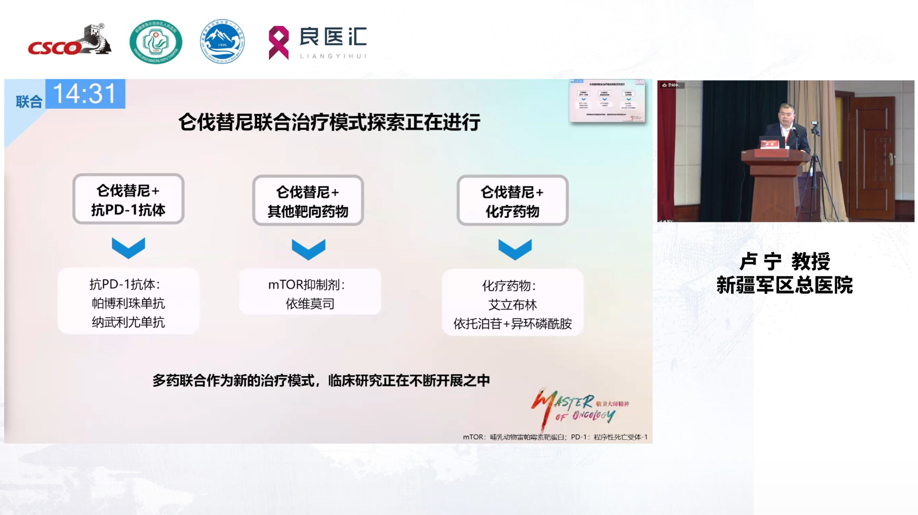 中国人民解放军新疆军区总医院卢宁教授以仑伐替尼为例,介绍了新型受体酪氨酸激酶(RTK)抑制剂的作用机制及其联合治疗模式在多个瘤种中的应用潜力。